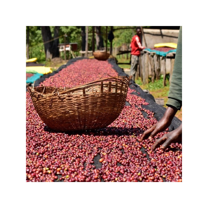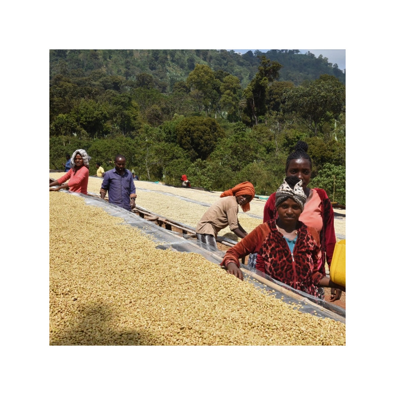 After selective hand-picking, cherries are sun-dried whole for 10–15 days on raised beds at the Getu Adola Milling Station, turned frequently for even drying. This traditional natural process enhances sweetness and develops a rich, juicy texture in the cup.