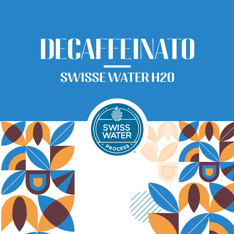 Caffè 100% Arabica decaffeinato naturalmente con il metodo Swiss Water® H2O, che utilizza solo acqua, tempo e temperatura per rimuovere la caffeina, preservando gli aromi originali del caffè. Ideale per chi desidera gustare un caffè autentico senza caffeina.