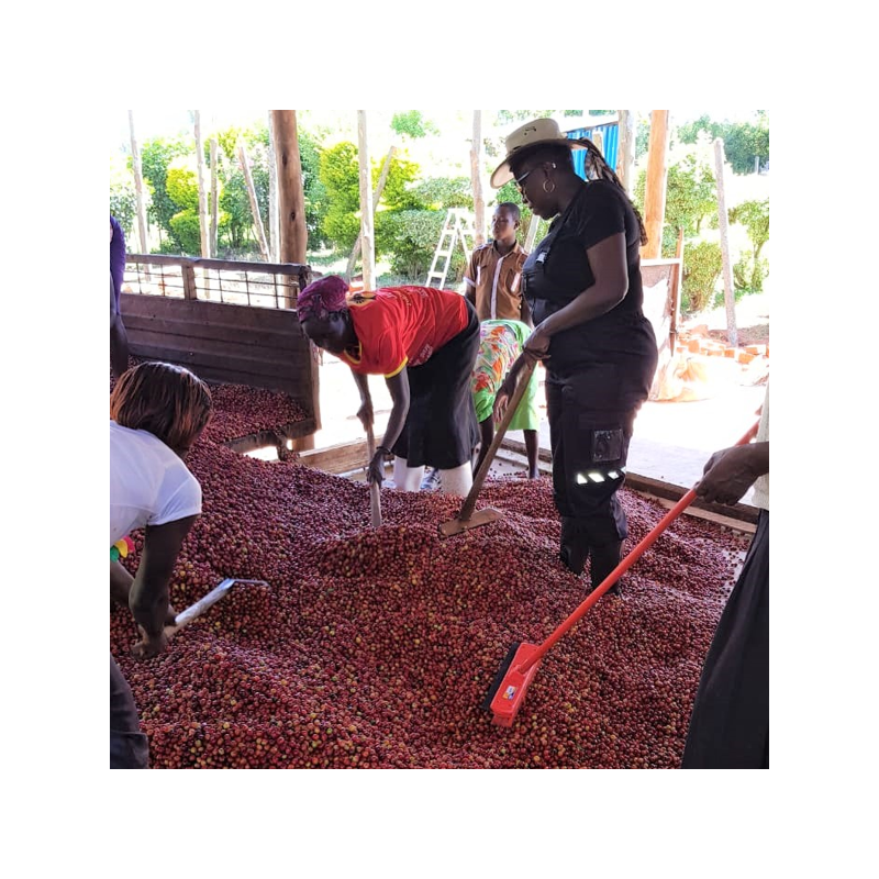 La varietà Batian, una delle cultivar più resistenti e aromaticamente interessanti del panorama africano, viene raccolta a mano solo al perfetto grado di maturazione. Le ciliegie subiscono un accurato processo di lavorazione lavata: vengono selezionate, depulpate, fermentate in acqua per 20–24 ore e poi lavate con cura, prima di essere asciugate lentamente su letti rialzati per due settimane. Questo metodo, unito all’altitudine e al terroir vulcanico, contribuisce a esaltare la pulizia e la brillantezza del profilo aromatico.
